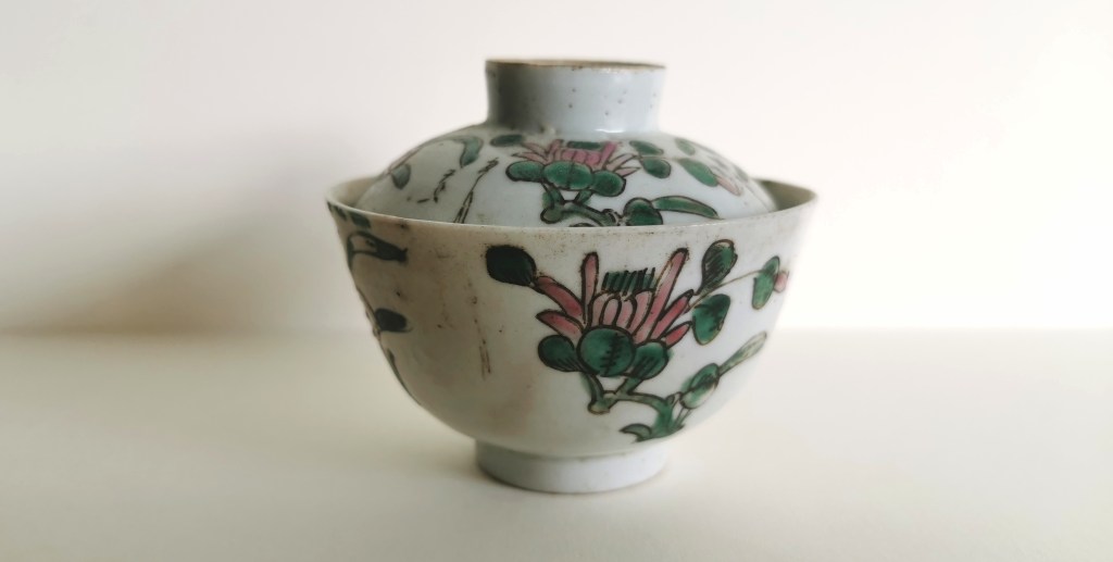 The first item I’ll be doing a portrait of is this small gaiwan or tea bowl. My family in Malaysia ran a business selling high-end furniture, lace and antique store. When it was wound up, the remaining inventory was distributed between the family, and I received this gaiwan. I’ll be researching it in parallel with creating the linocut, but for now I know that it originated in China and was likely from the late Qing dynasty.