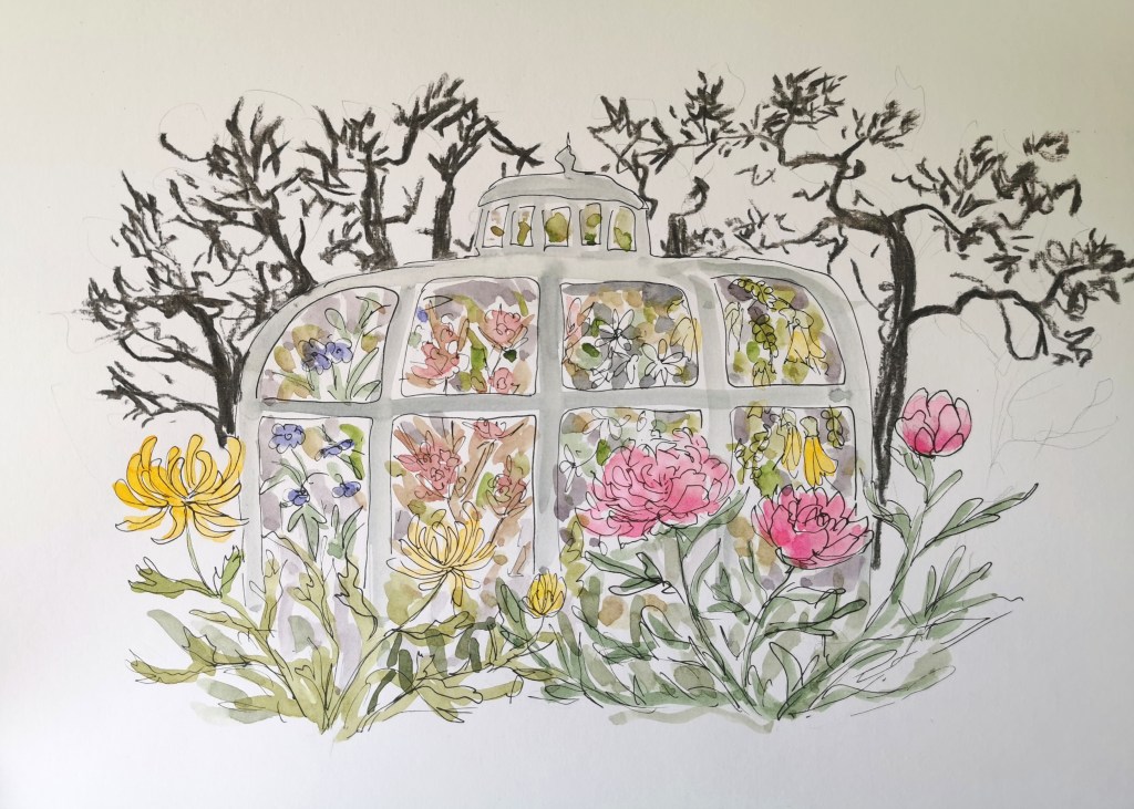 - in the greenhouse are native flowers. They are behind glass for a myriad of reasons – they are precious and to be protected, they have in a sense swapped places with the exotic plants as it becomes harder to thrive here in the face of climate change and invasive species, and they are the plants I feel least connected to as if there were a barrier between them and me.