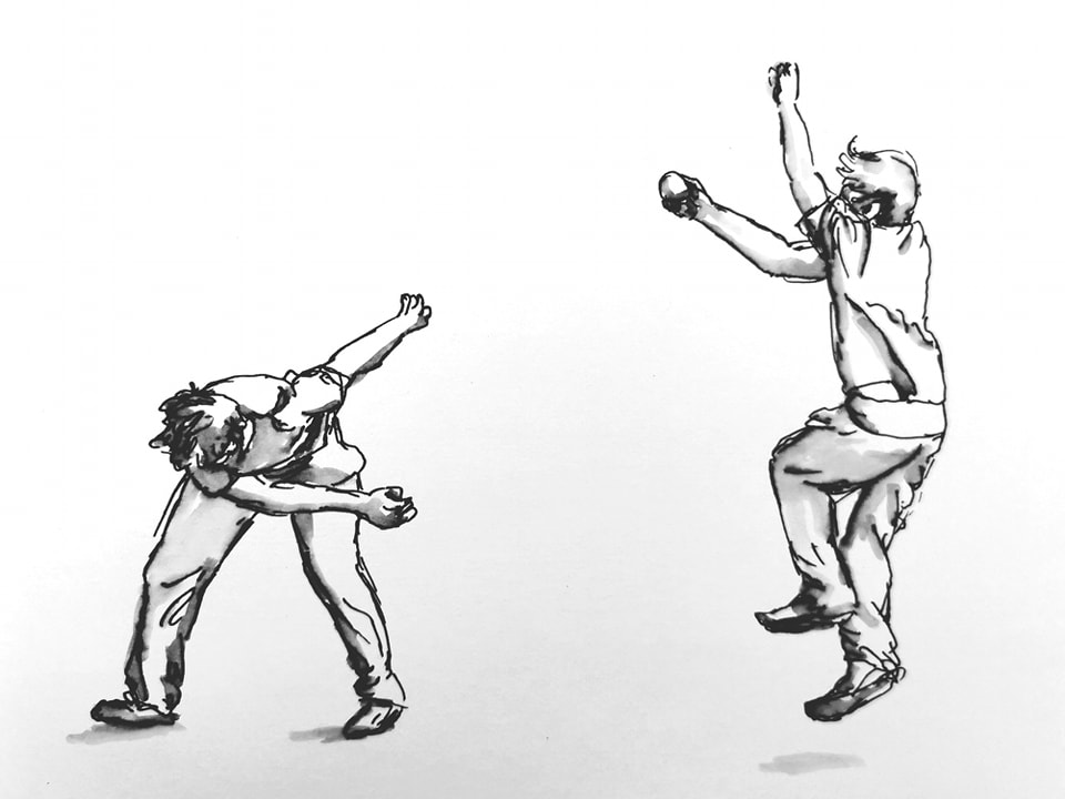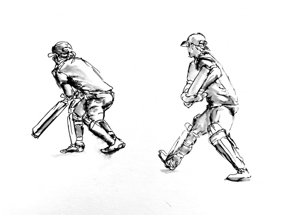 As the cricket season came to a close, I enjoyed sketching the players. At first I attempted to draw them from life but found it easier to take a few photos and refer to them. It still felt like a plein air experience, as I sat at the boundary amongst the gear bags and scoring books, listening to the batsmen calling to each other and the fielders appealing.