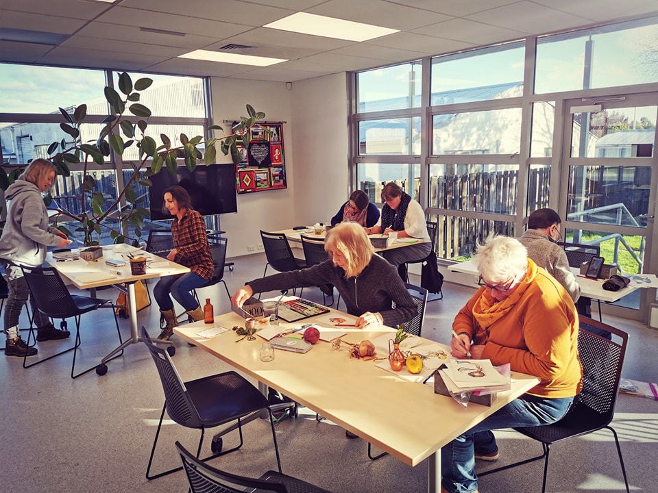 I spent four Saturday afternoons in this sunny corner of the Darfield library, teaching this lovely group watercolour and sketching techniques. Thank you to Selwyn Libraries for organising.